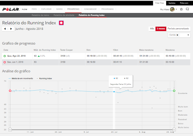 É apresentado também, talvez o item mais importante para os corredores que querem seguir os seus treinos e evoluir do Relatório do "Running Index".